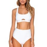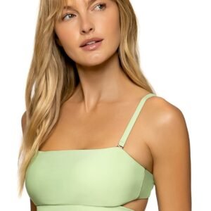 This bandeau top gets a feminine update with ruffles. Get minimal tan lines and a secure fit with removable, adjustable straps.